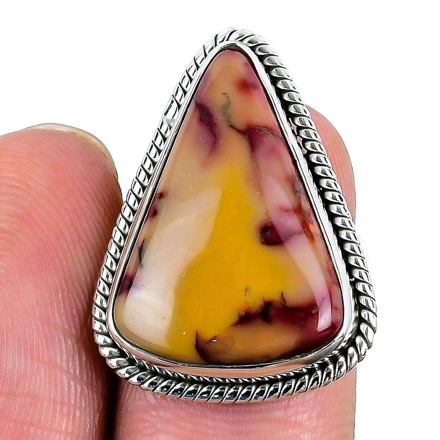 Mookaite Stone 925Ā SolidĀ Silver Artisan Statement Wife Bezel New Ring Size 5.5