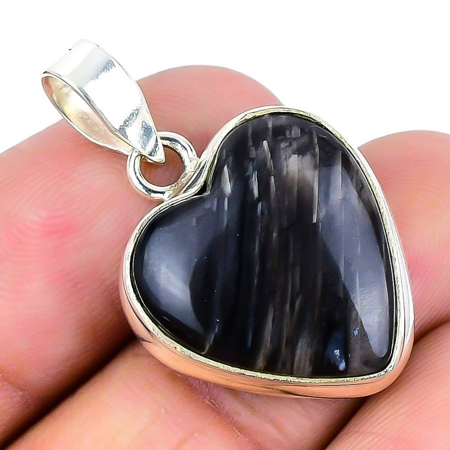 Natural Midnight Obsidian 925 Silver Mother Unique Engagement Pendant Jewelry