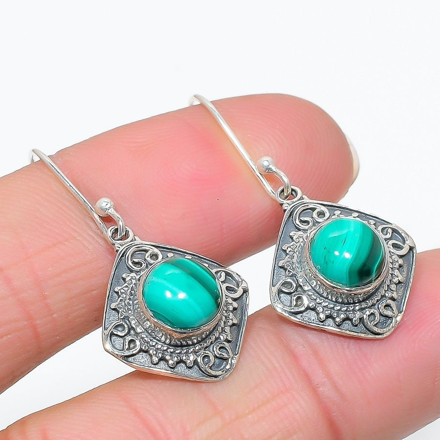 Natural Malachite 925 Silver Dangling Hook Daughters Day Heart Chakra Earrings