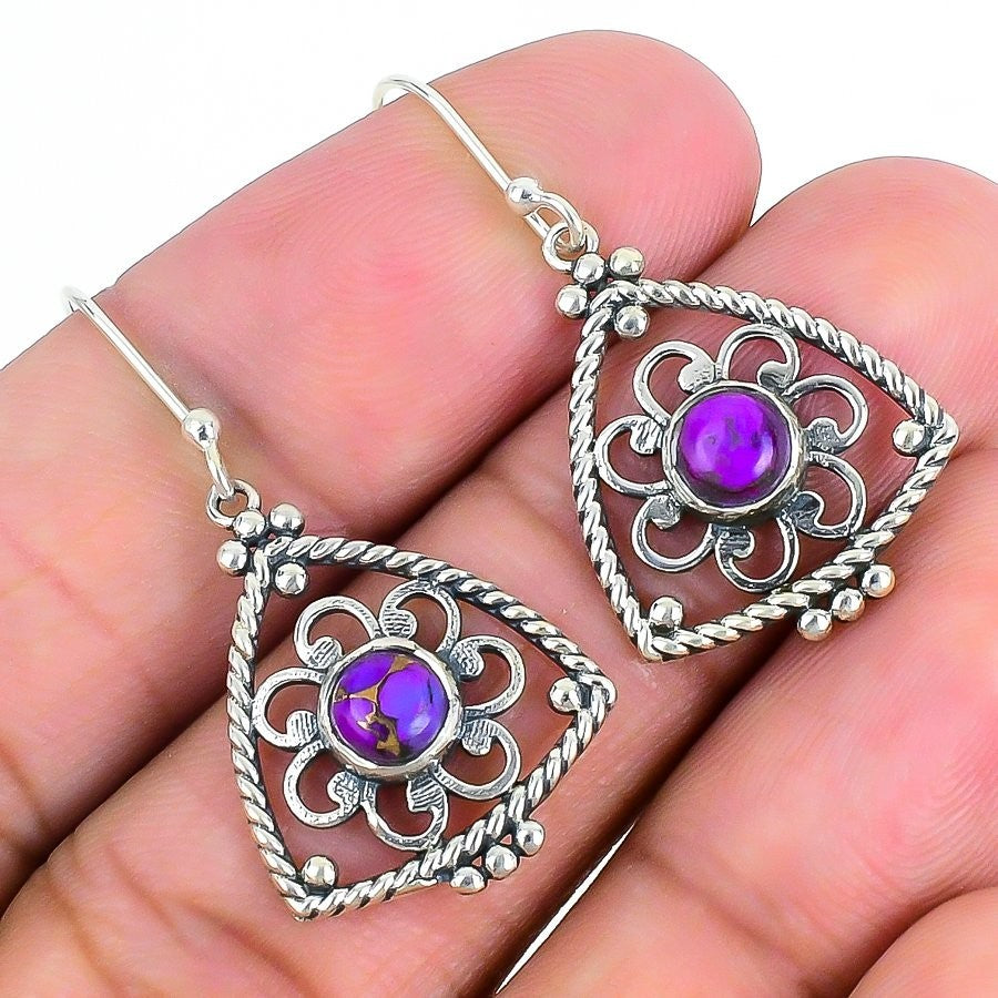 Natural Copper Purple Turquoise Drop Dangle New Earrings Jewelry Sterling Silver