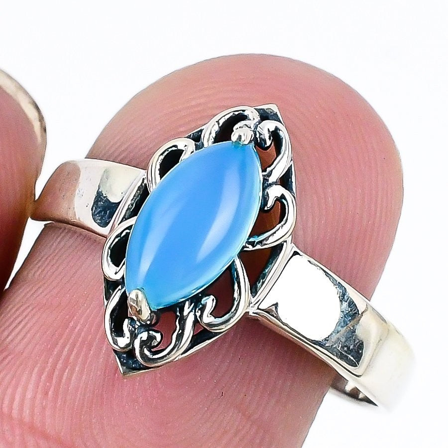 Aqua Chalcedony Stone Solid Sterling Silver Artisan Wife Statement Ring US 10.5