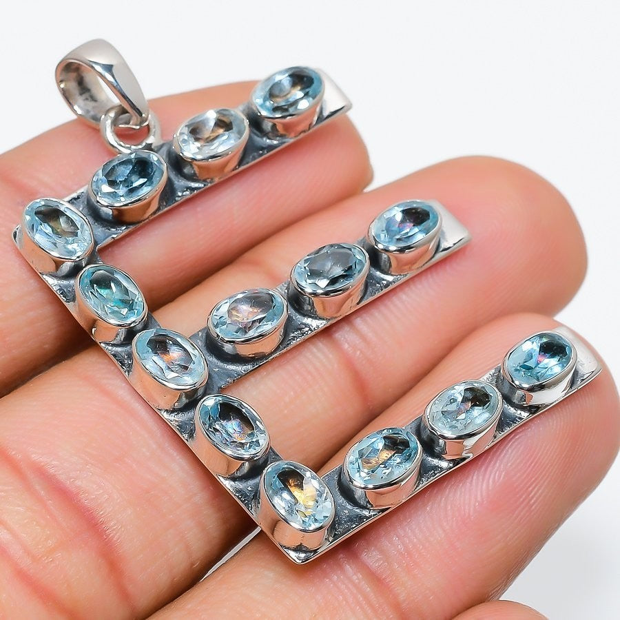 Daughters Day Sale March Natural Aquamarine Solid Silver Mother Handmade Pendant