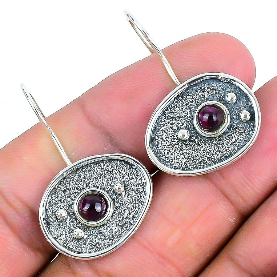 Garnet Stone 925Ā SolidĀ Silver Daughters Day January Dangle Wife Earrings Jewelry