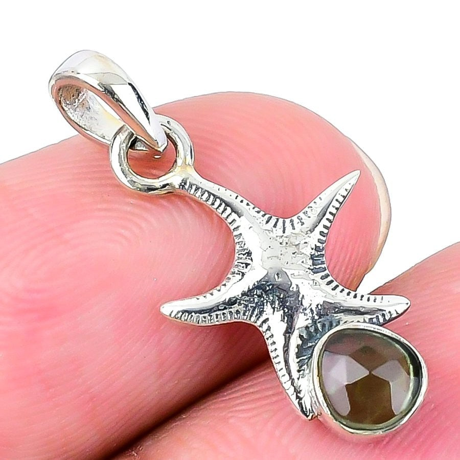 Green Amethyst Gemstone Art Deco Birthday Unique Pendant Jewelry Sterling Silver
