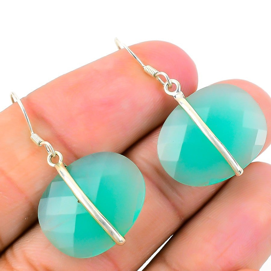 Aqua Chalcedony Gemstone Daughters Day Mother Dangle Earrings Sterling Silver