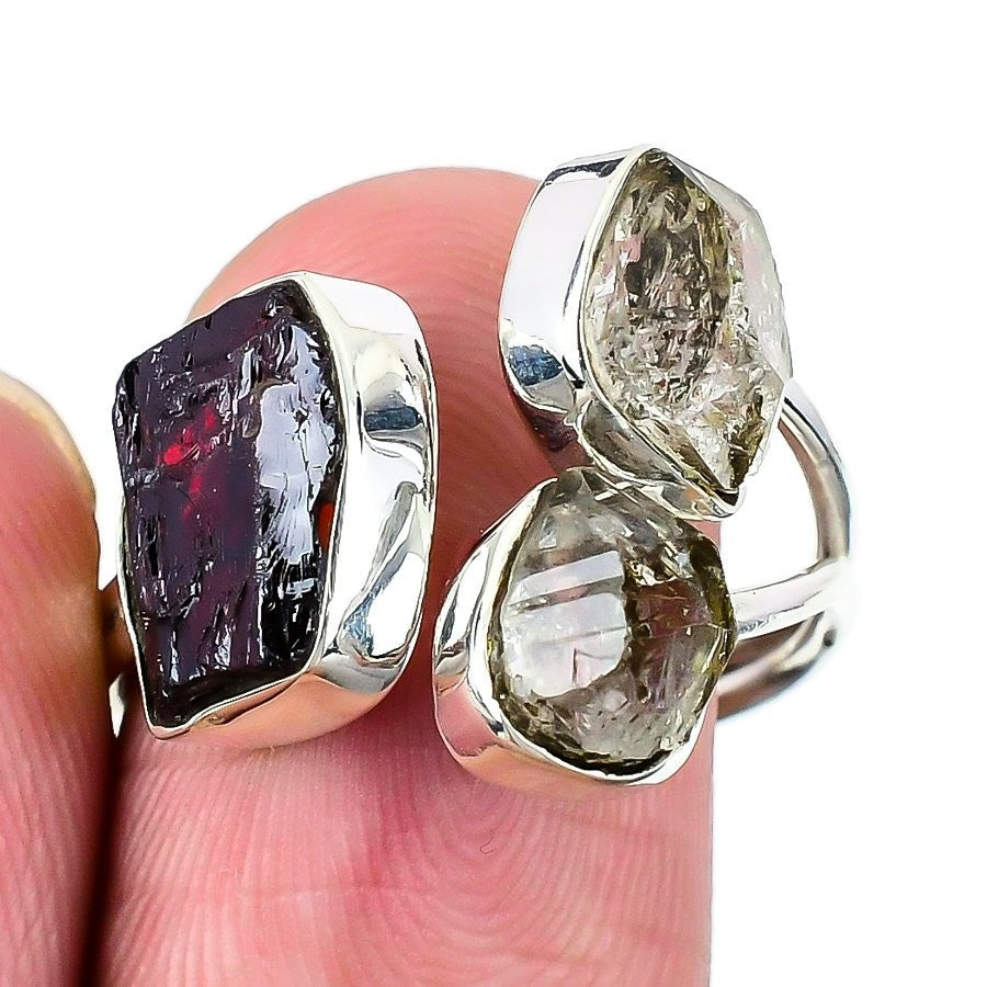 Natural Herkimer Daimond Solid Sterling Silver Elegant Statement Ring Size 10