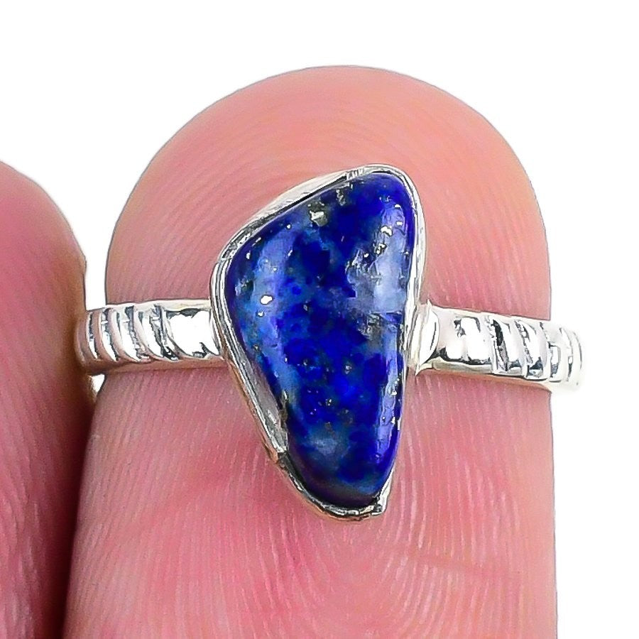 Lapis Lazuli Stone Sterling Silver Wife Stackable Daughters Day Boho Ring US 5.5