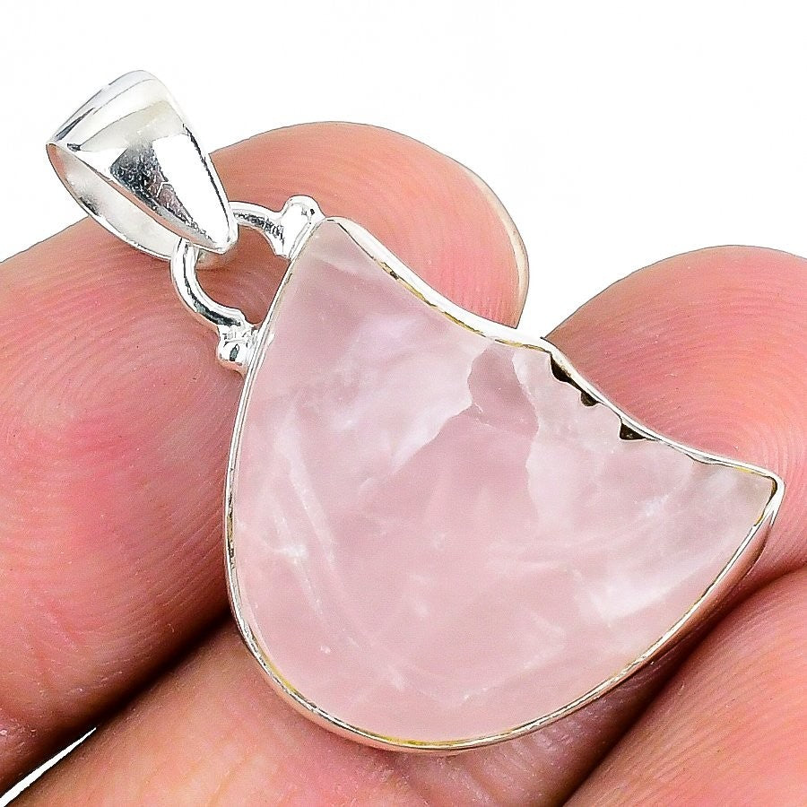 Natural Rose Quartz 925 Silver Bezel Best Daughters Gift Sister Elegant Pendant