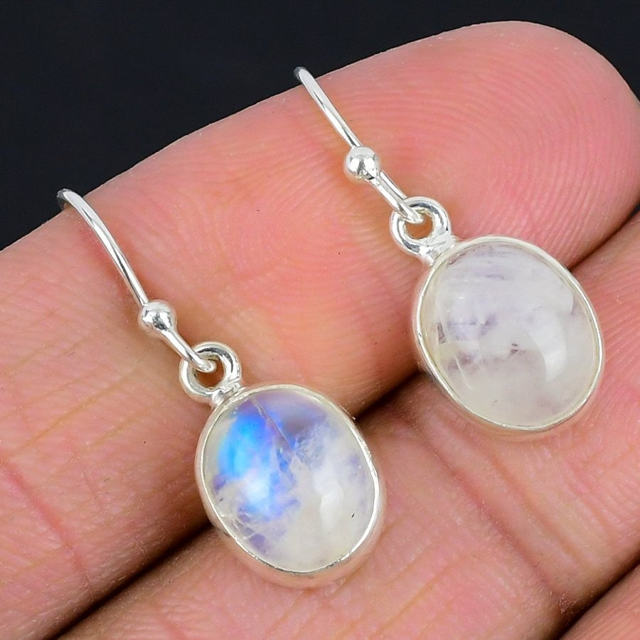 Rainbow Moonstone Stone Solid Sterling Silver Drop Dangle Daughter Gift Earrings
