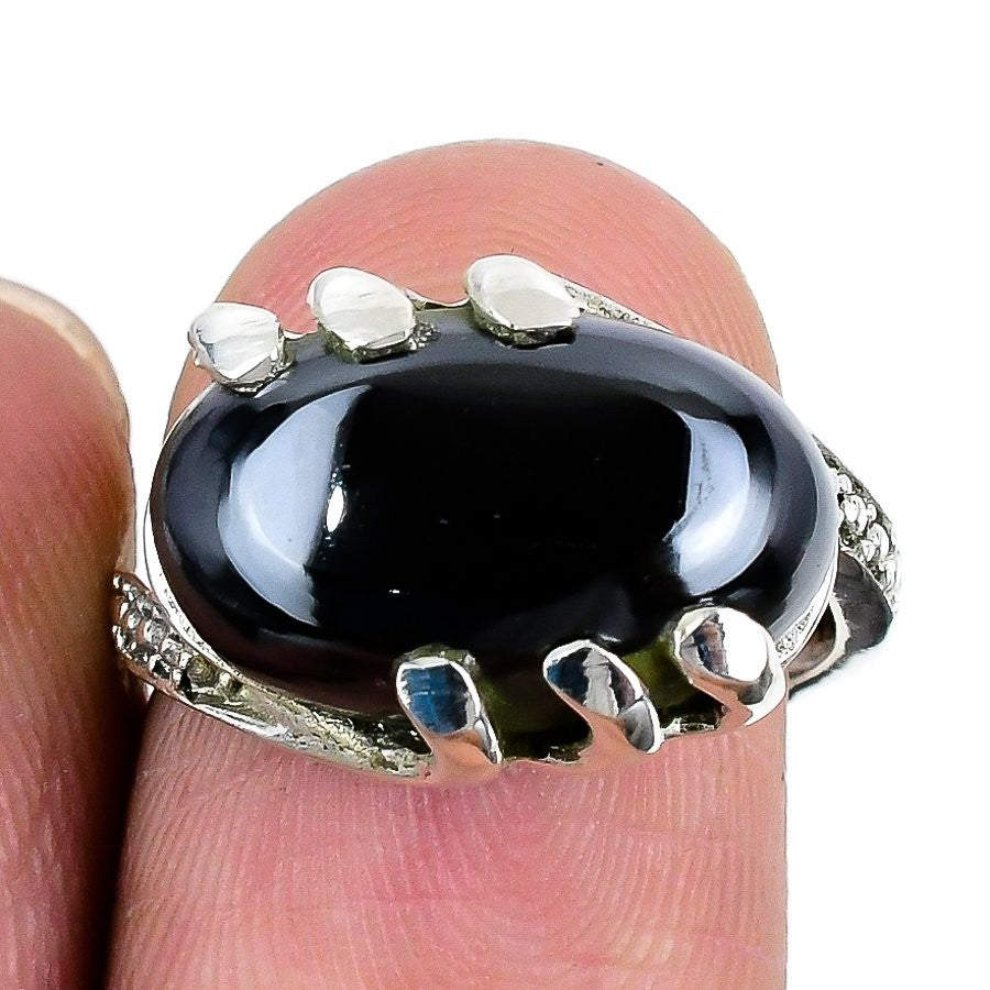 Black Onyx Gemstone Sterling Silver Bezel Birthday Statement Ring Jewelry US 7.5