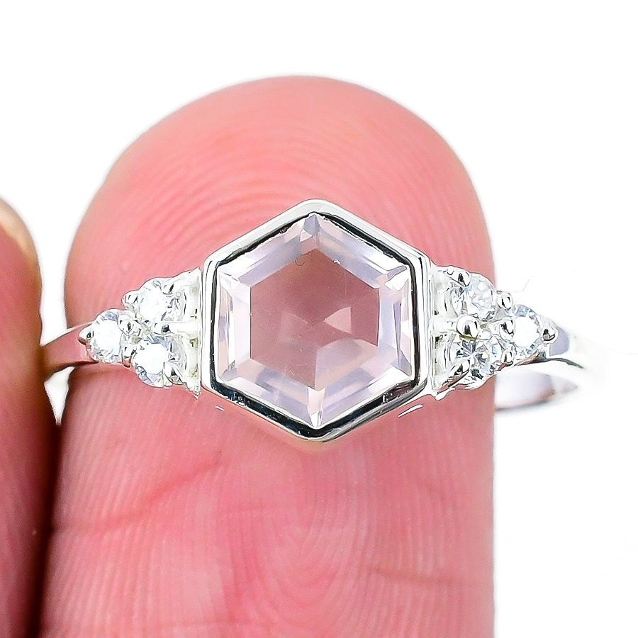 Rose Quartz Gemstone 925Ā SolidĀ Silver Mother Cluster Anniversary Ring Jewelry