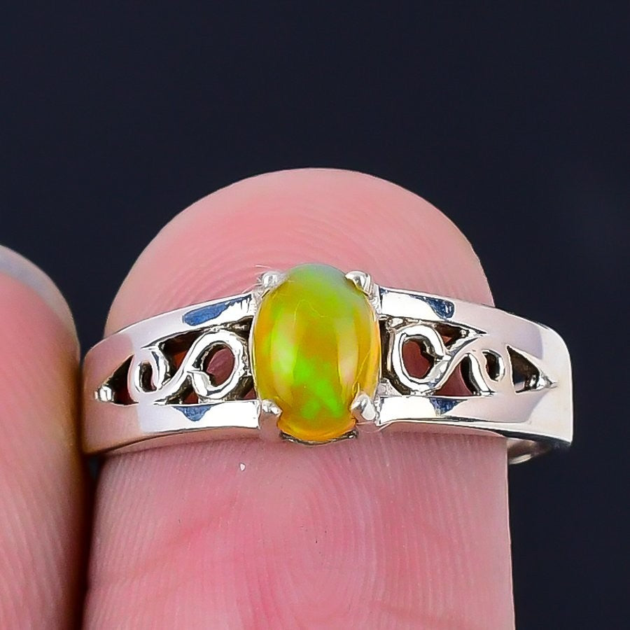 Ethiopian Opal Gemstone Mother Statement Ring Jewelry Solid Sterling Silver US 8