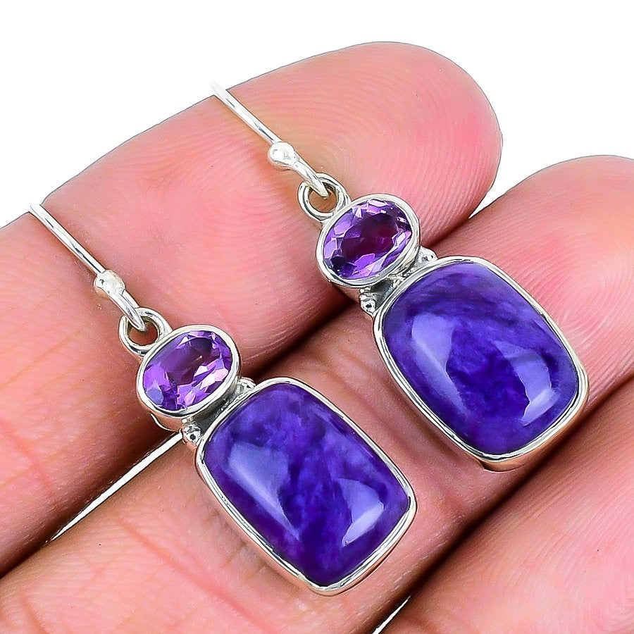 Russian Charoite Gemstone 925 Sterling Silver New Stud Daughter Earrings Jewelry