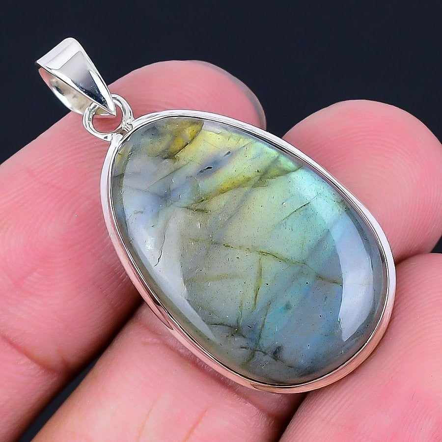 Natural Labradorite Channel Set Mother Handcrafted Pendant 925 Sterling Silver