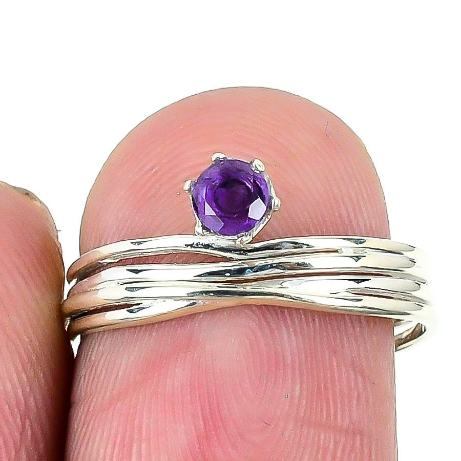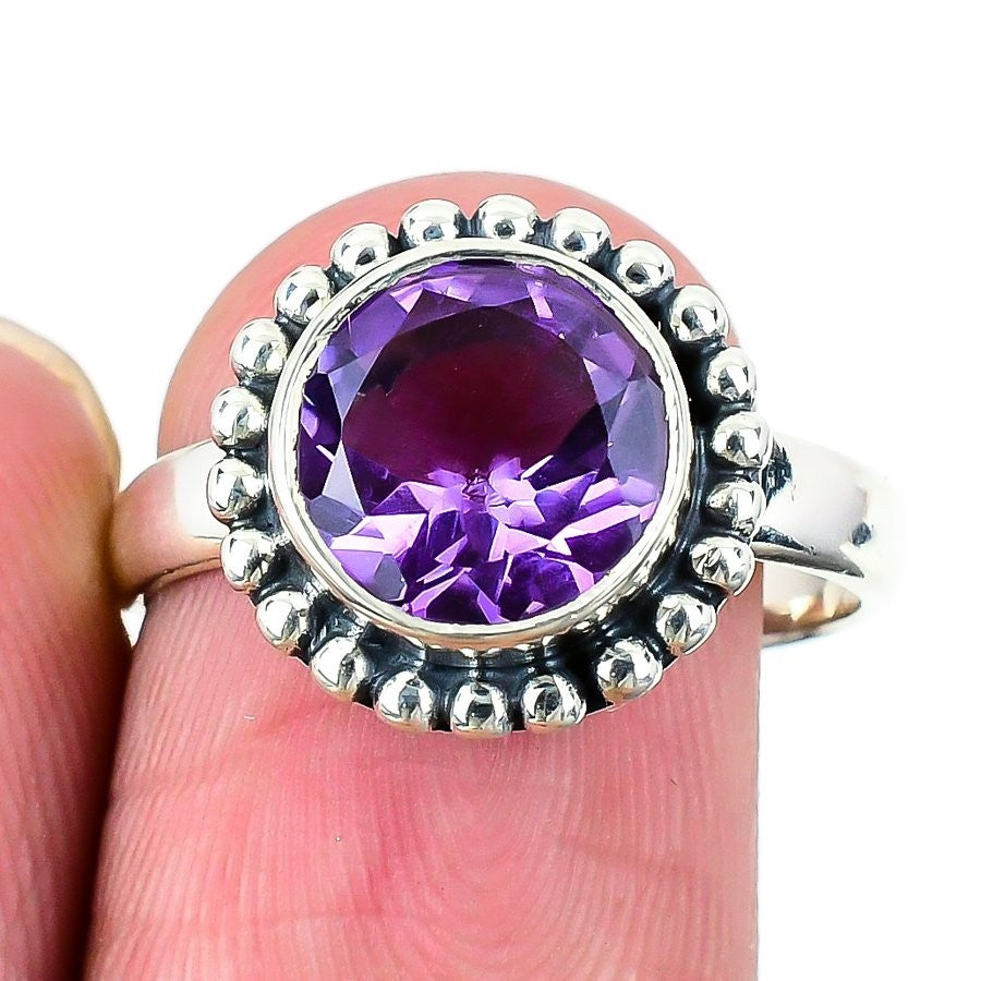 Amethyst Gemstone Solid Sterling Silver Statement February Birth New Ring Size 8