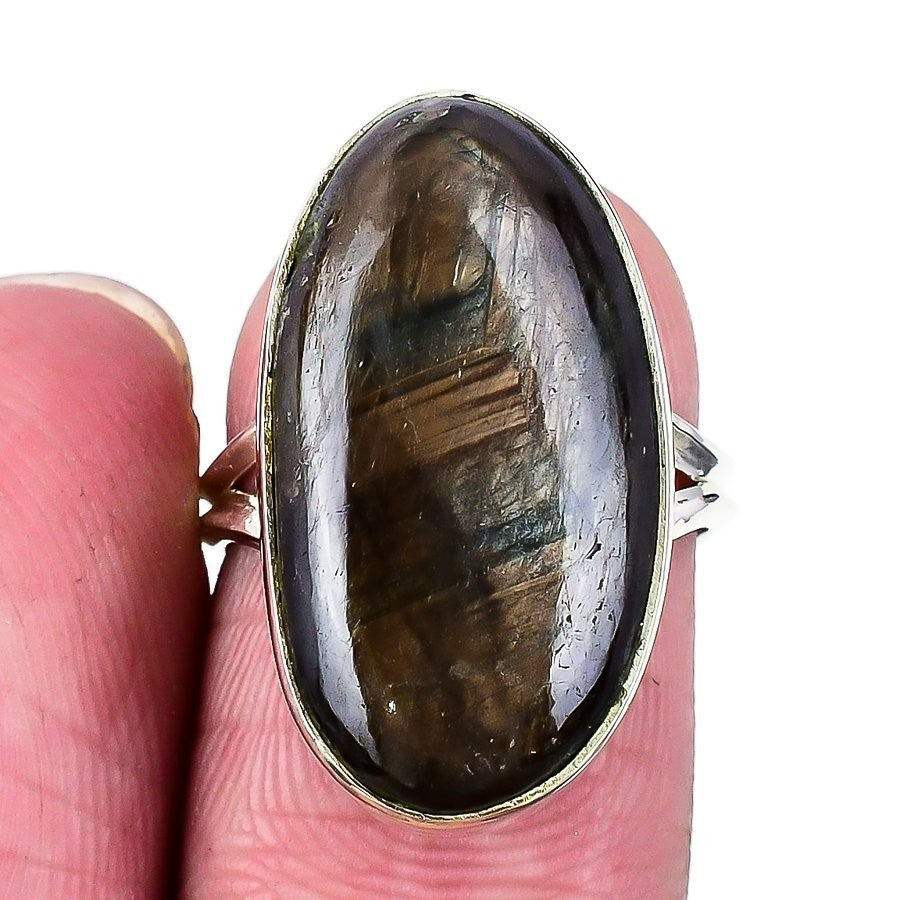 Golden Rutile Stone Sterling Silver New Statement Handcrafted Ring Jewelry US 10