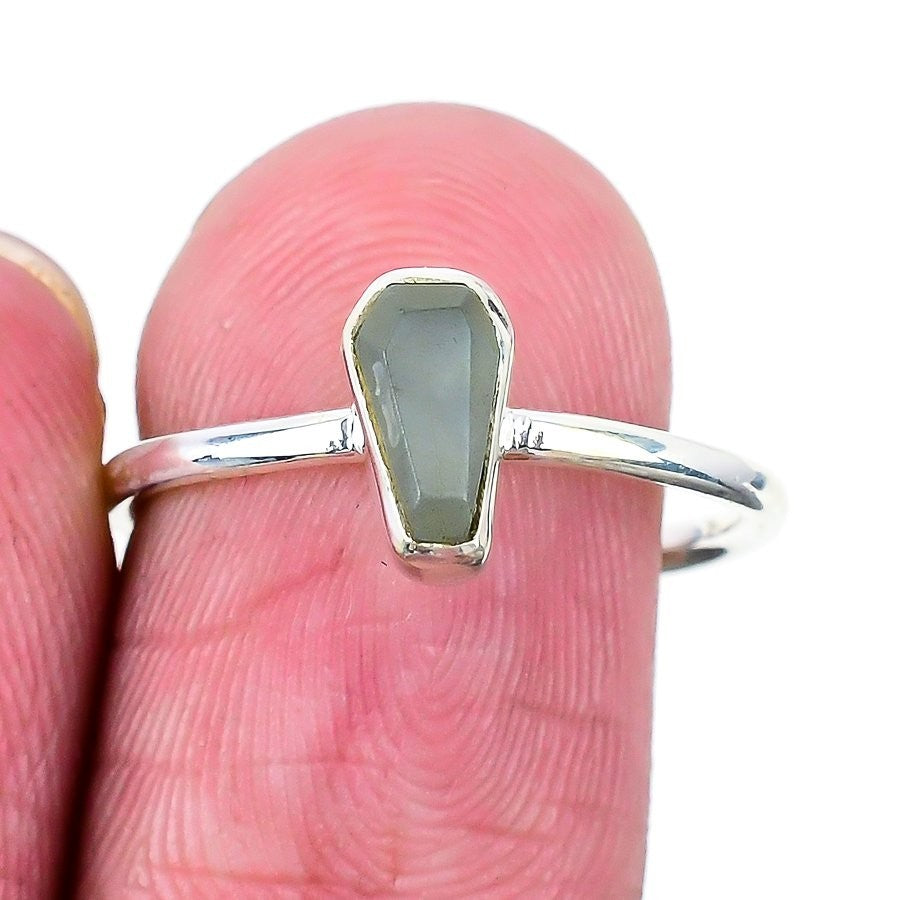 Natural Black Seraphinite Solid Silver Ethnic Cluster Channel Set Ring Size 6.5
