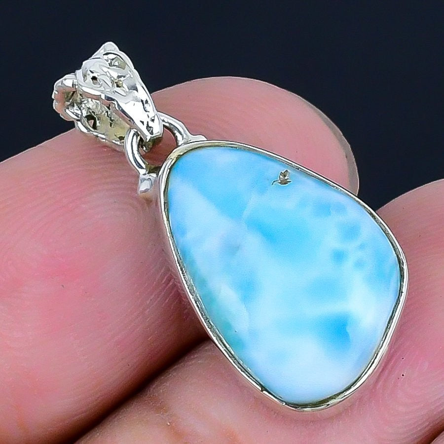 Republic Larimar Stone Handcrafted Trendy Ethnic Boho Pendant Jewelry 925 Silver