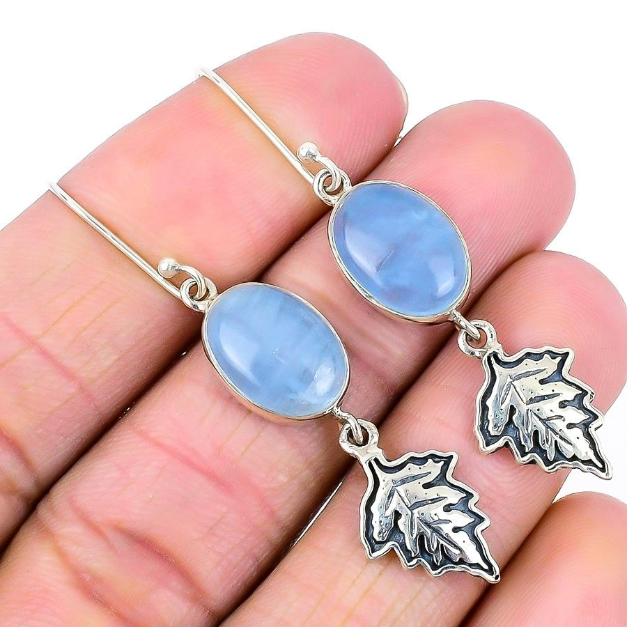 Aqua Chalcedony Gemstone Sterling Silver Birthday Boho Dangle Drop Hook Earrings