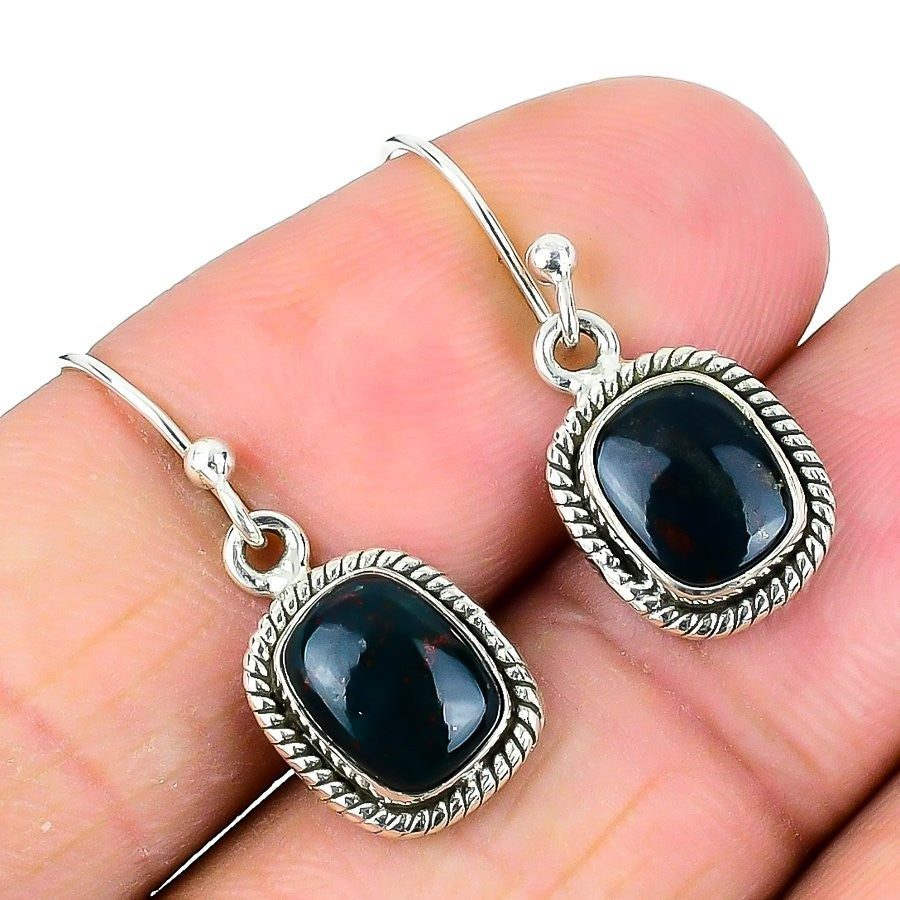 Bloodstone Gemstone 925Ā SolidĀ Silver Daughters Day Wife Dangle Earrings Jewelry