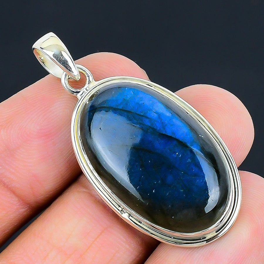 Third Eye Chakra Natural Labradorite Sterling Silver Wife Daughter Gift Pendant