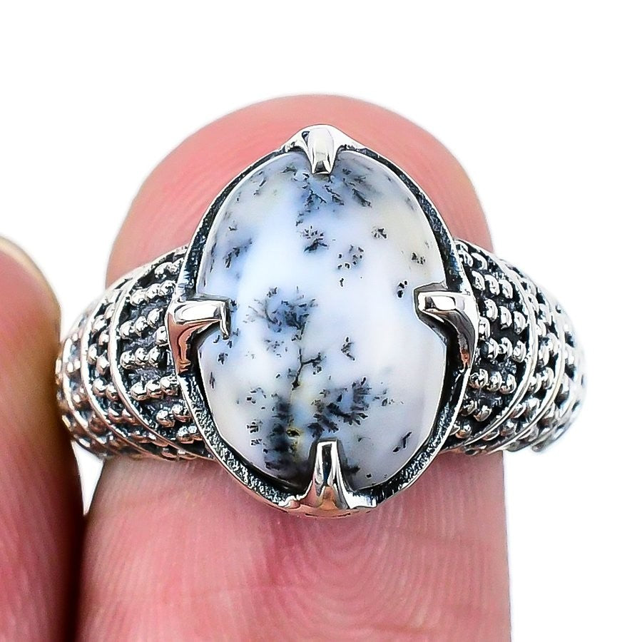 Dendrite Opal Stone 925 Silver Statement Best Daughters Gift Ring Jewelry US 7