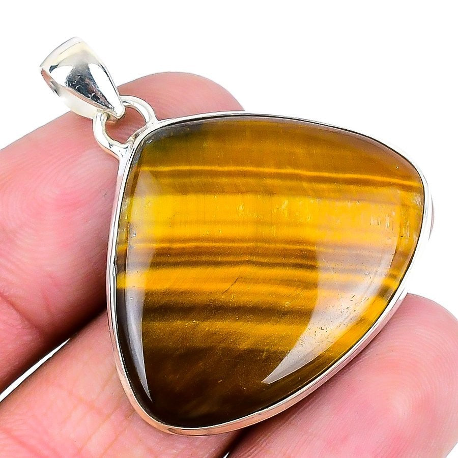 Natural Tiger Eye Solid Silver Ethnic Art Deco Daughter Elegant Pendant Jewelry
