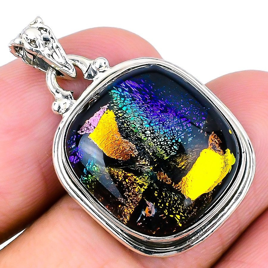 Natural Dichoric Glass Solid Sterling Silver Boho Daughters Day Pendant Jewelry