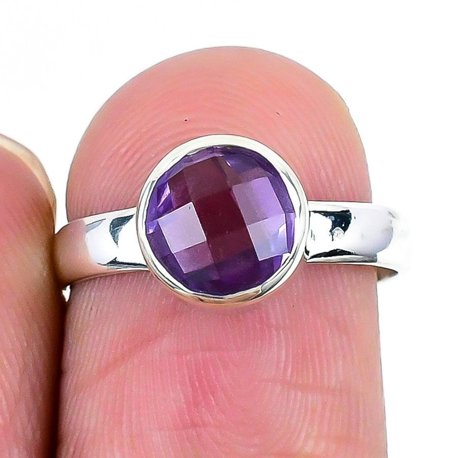 Amethyst Stone Birthday Wedding New Statement Channel Set Ring Solid Silver US 7
