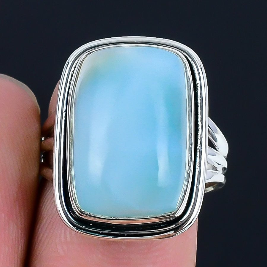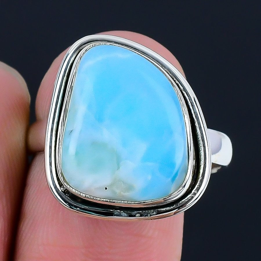 Throat Chakra Natural Larimar 925 Silver Bezel Statement Unique New Ring Size 8
