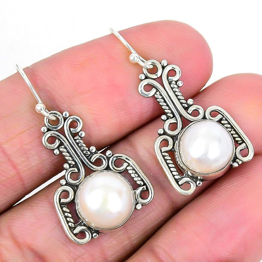 Daughters Day Sale River Pearl Stone Solid Sterling Silver Wedding Drop Earrings