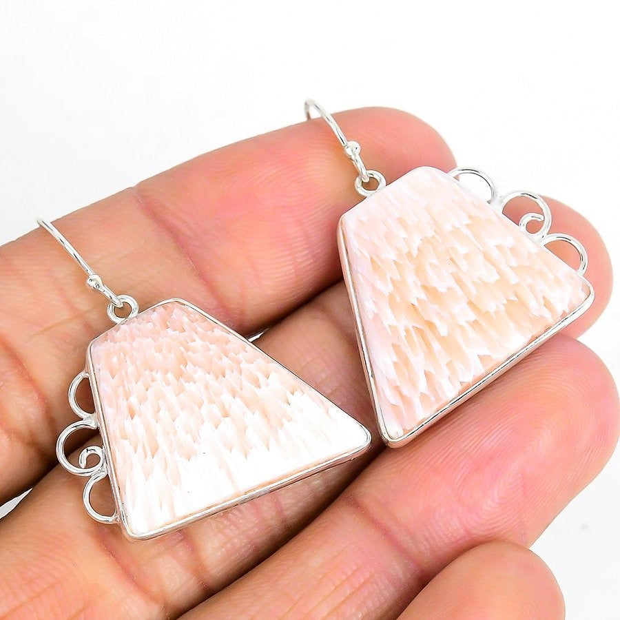 Crown Chakra Orange Scolecite Stone Solid Silver Engagement Hook Drop Earrings