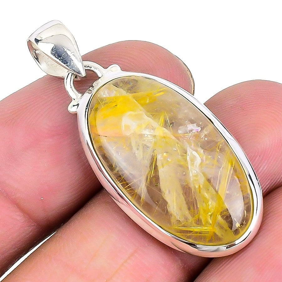 Golden Rutile Stone Wife Best Daughters Gift Pendant Jewelry 925Ā SolidĀ Silver