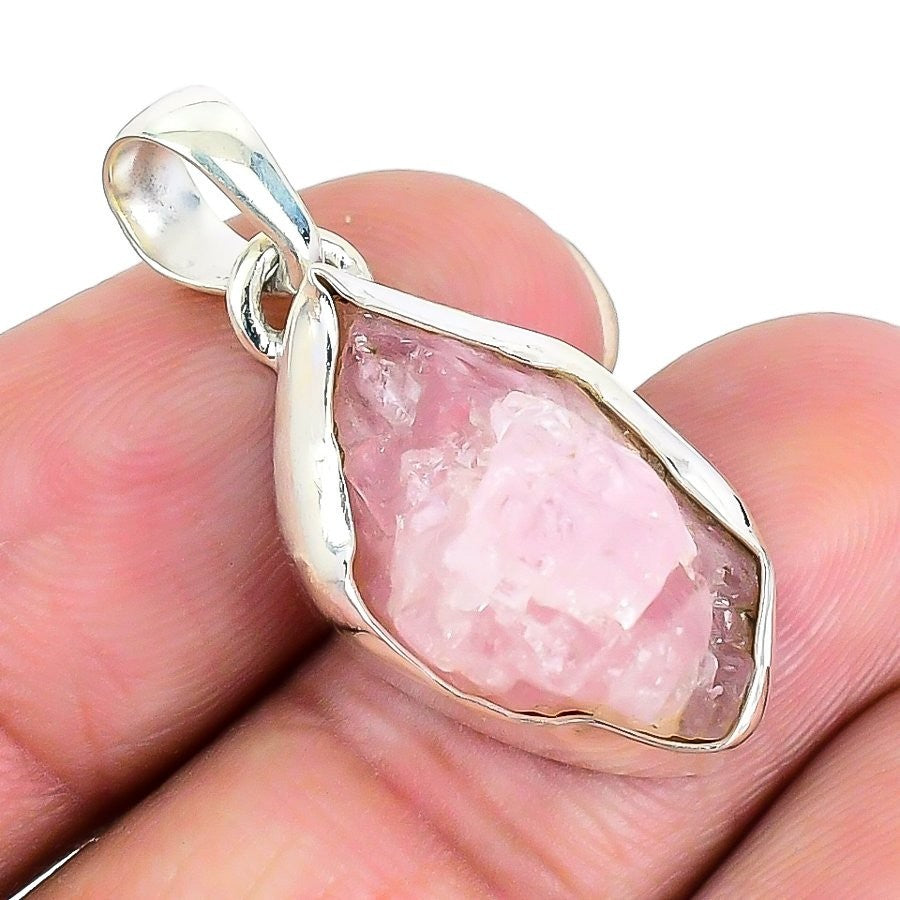 Rose Quartz Stone Solid Silver Artisan Mother Trendy Engagement Pendant Jewelry