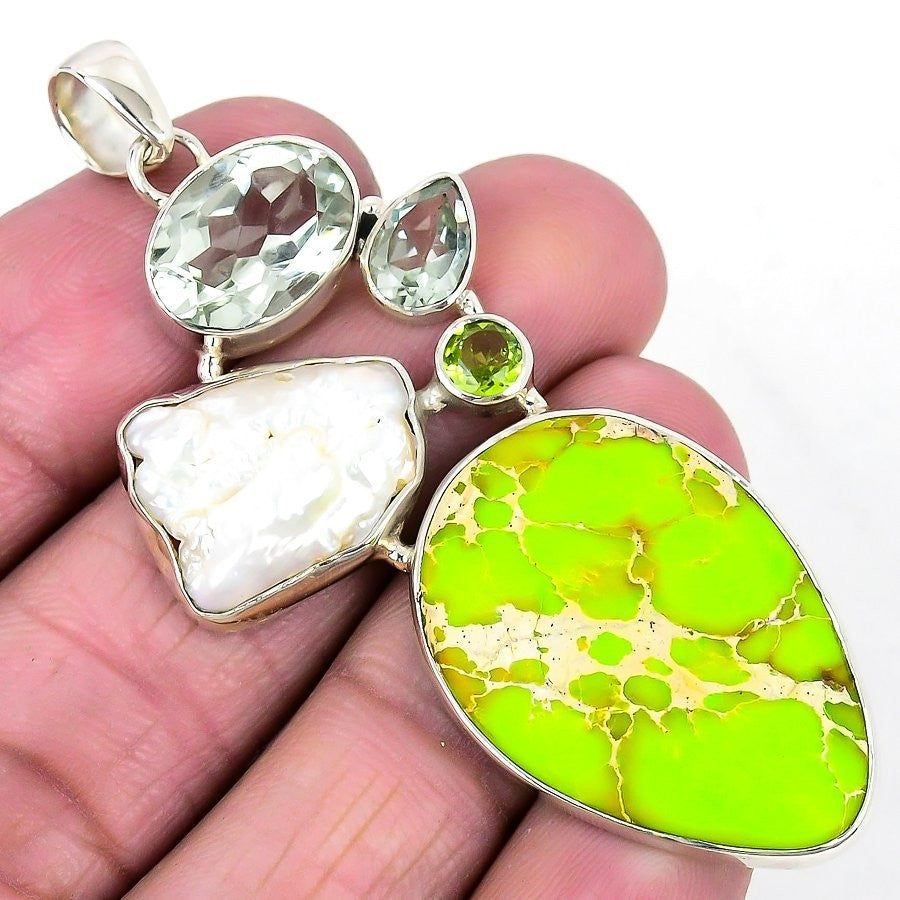 Schelen Blend Stone 925 Sterling Silver Wedding Handmade Sister Boho New Pendant