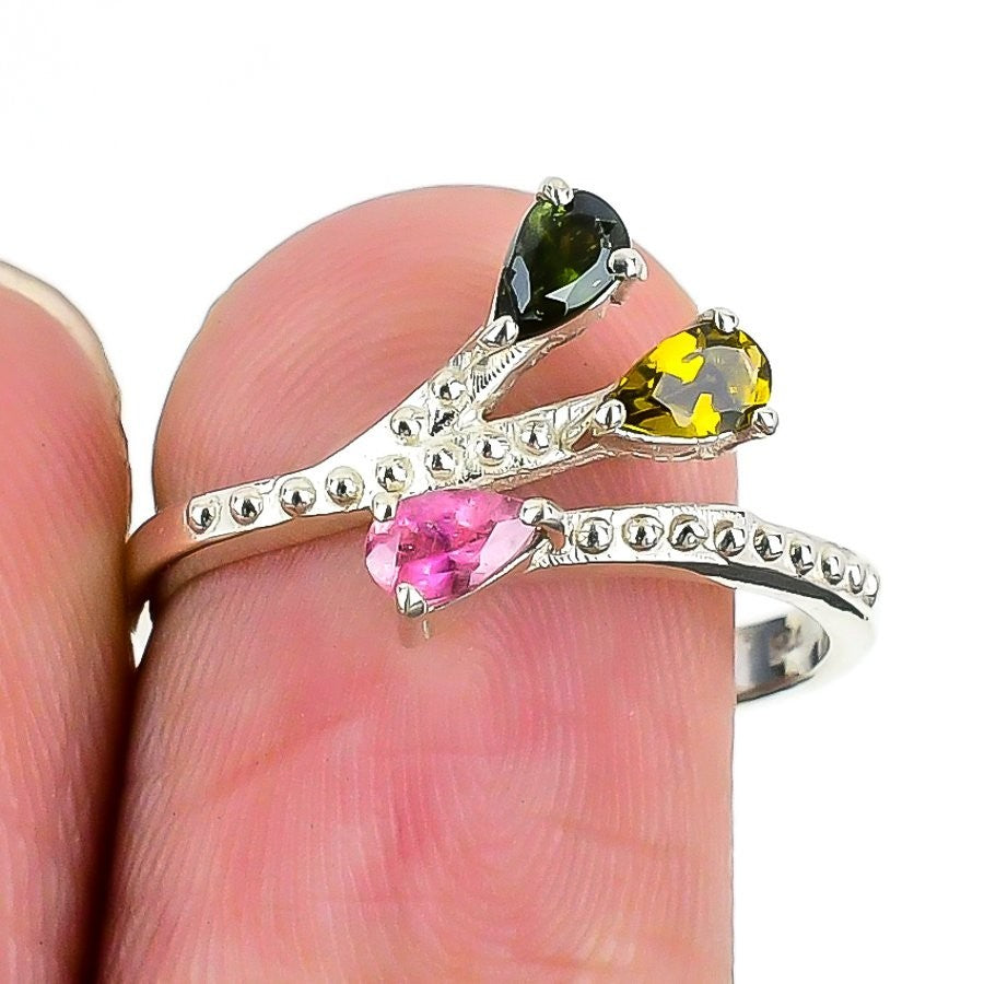 Pink Tourmaline Stone Solid Silver Boho Statement Heart Chakra Ring Jewelry US 9