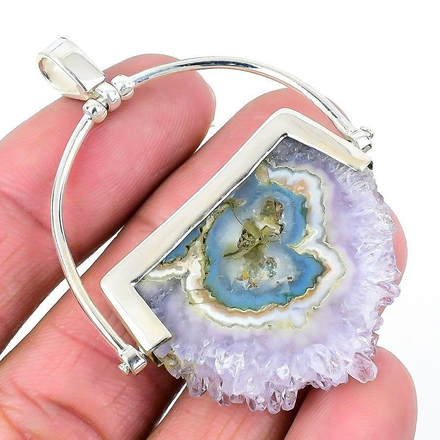 Amethyst salactile Stone 925 Sterling Silver Channel Set Art Deco Sister Pendant