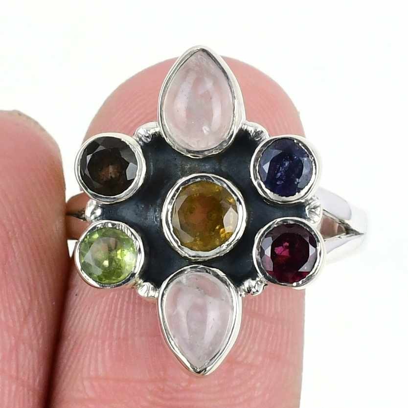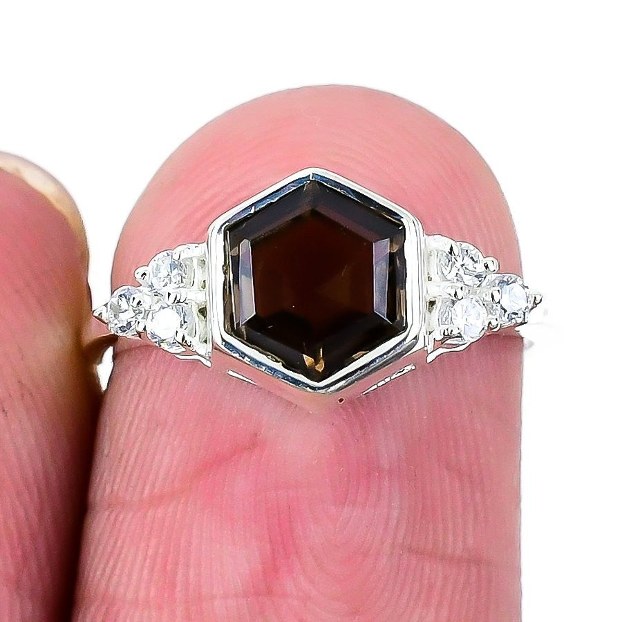 Smoky Topaz Gemstone Wife Ethnic New Cluster Unique Ring Size 6 Sterling Silver