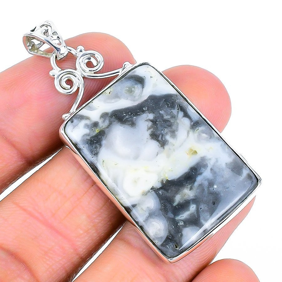 Crazylace agate Gemstone Sterling Silver Art Deco Daughter Boho Pendant Jewelry