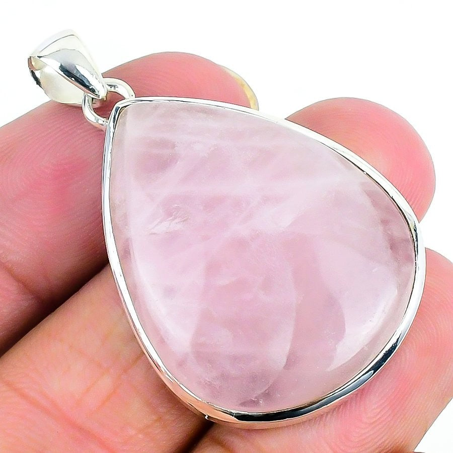 Rose Quartz Gemstone Sterling Silver Engagement Unique Anniversary Wife Pendant