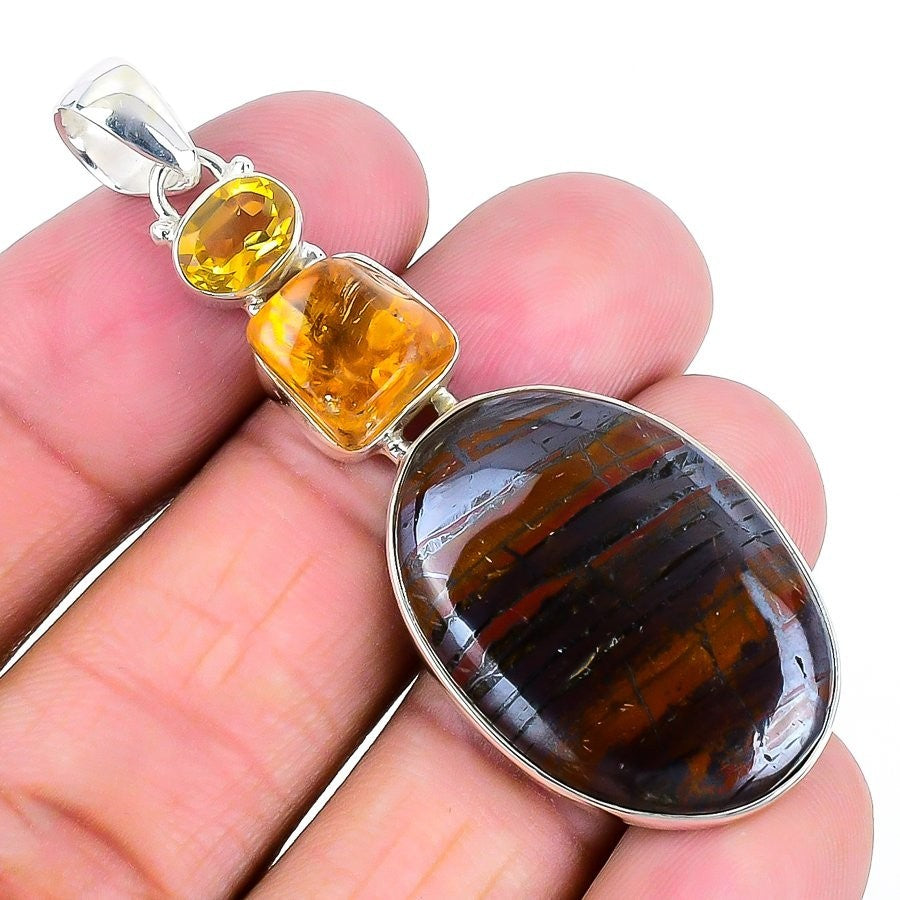 Iron Tiger Eye Gemstone 925Ā SolidĀ Silver Daughters Day Wedding Unique Pendant
