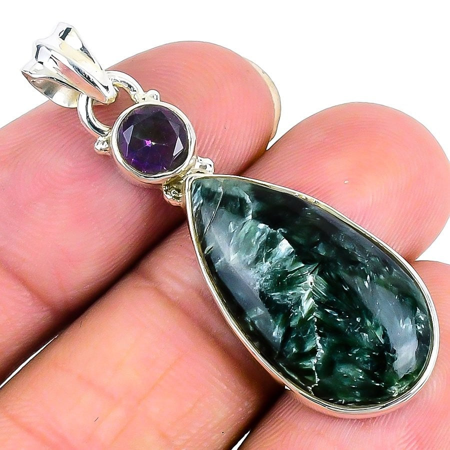 Seraphinite Gemstone Bezel Anniversary Sister New Pendant Solid Sterling Silver