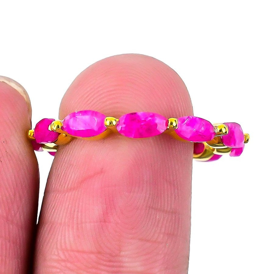 Kashmir Red Ruby Gemstone Solid Silver Artisan Handcrafted Cluster Ring Size 8.5