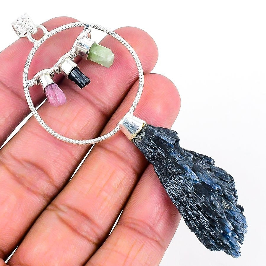 Black Kyanite Stone 925Ā SolidĀ Silver Engagement Anniversary Wedding Wife Pendant
