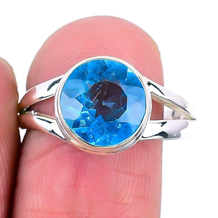 Daughters Day Sale Swiss Blue Topaz Stone Statement Trendy Ring 925 Silver US 8