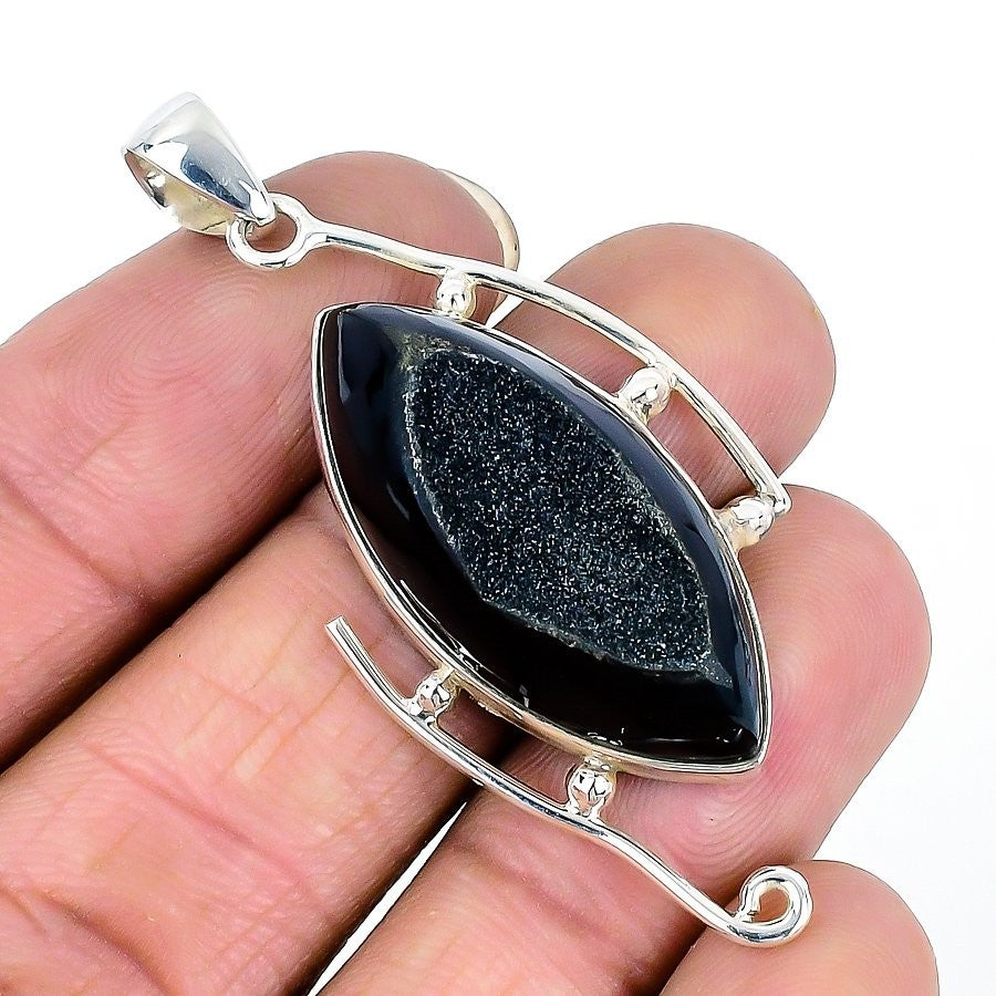 Natural Black Botswana Druzy 925 Sterling Silver Daughter Engagement New Pendant