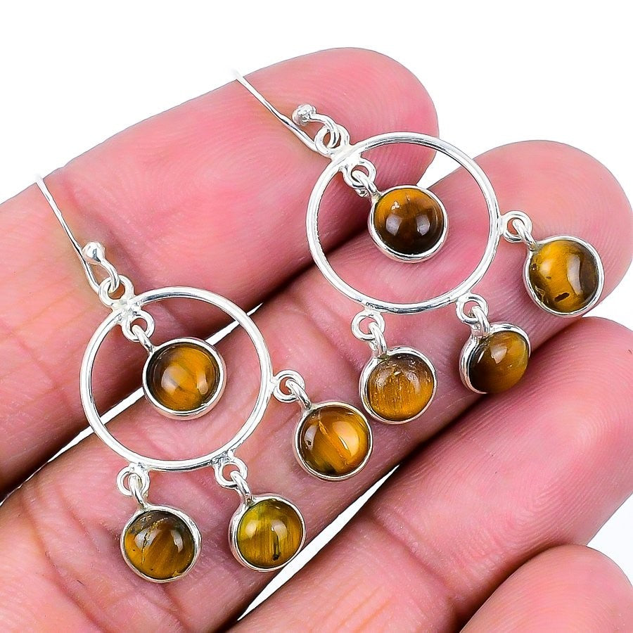 Tiger Eye Gemstone Solid Silver Hook Daughters Day Trendy Drop Dangle Earrings