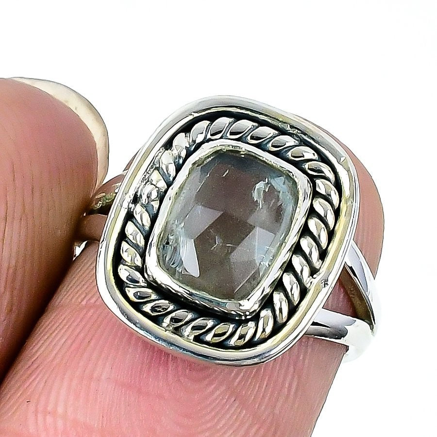 Green Amethyst Faceted Gemstone 925 Sterling Silver Statement Wife Ring Jewelry