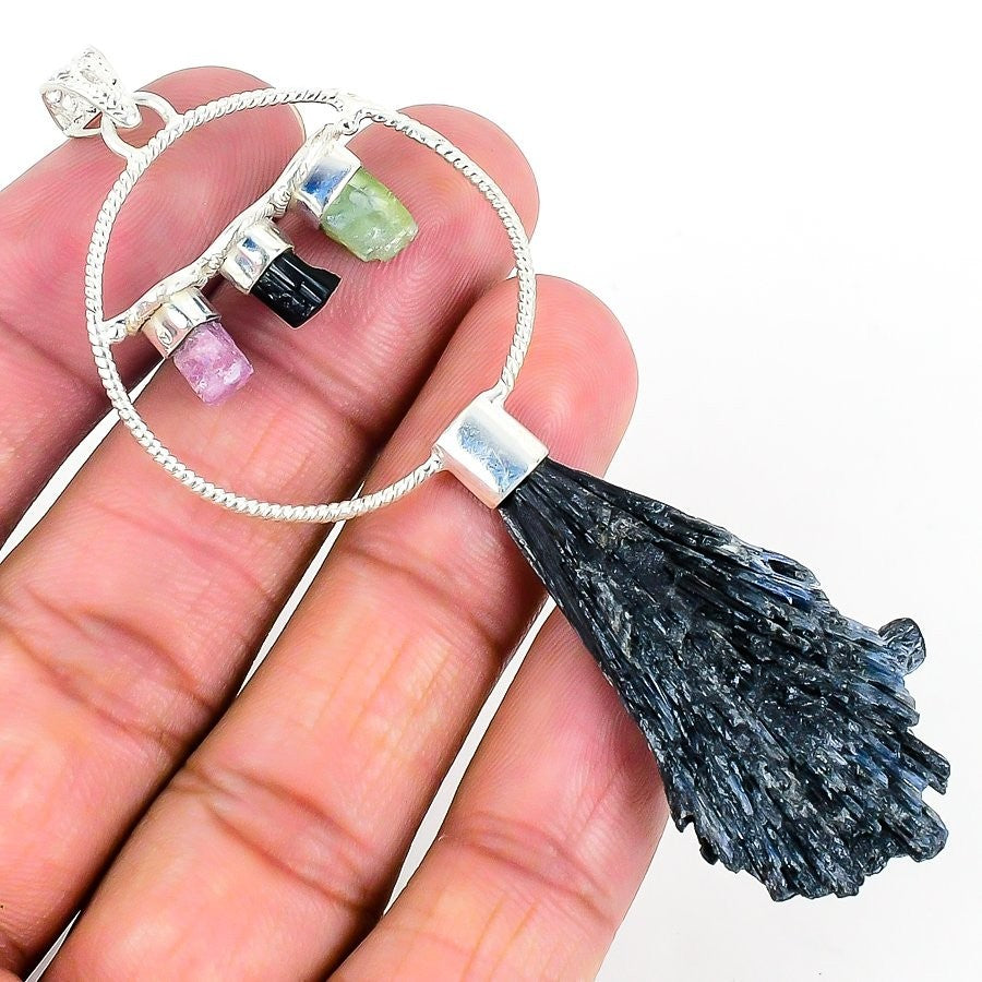 Natural Black Kyanite 925 Silver Anniversary Throat Chakra Engagement Pendant