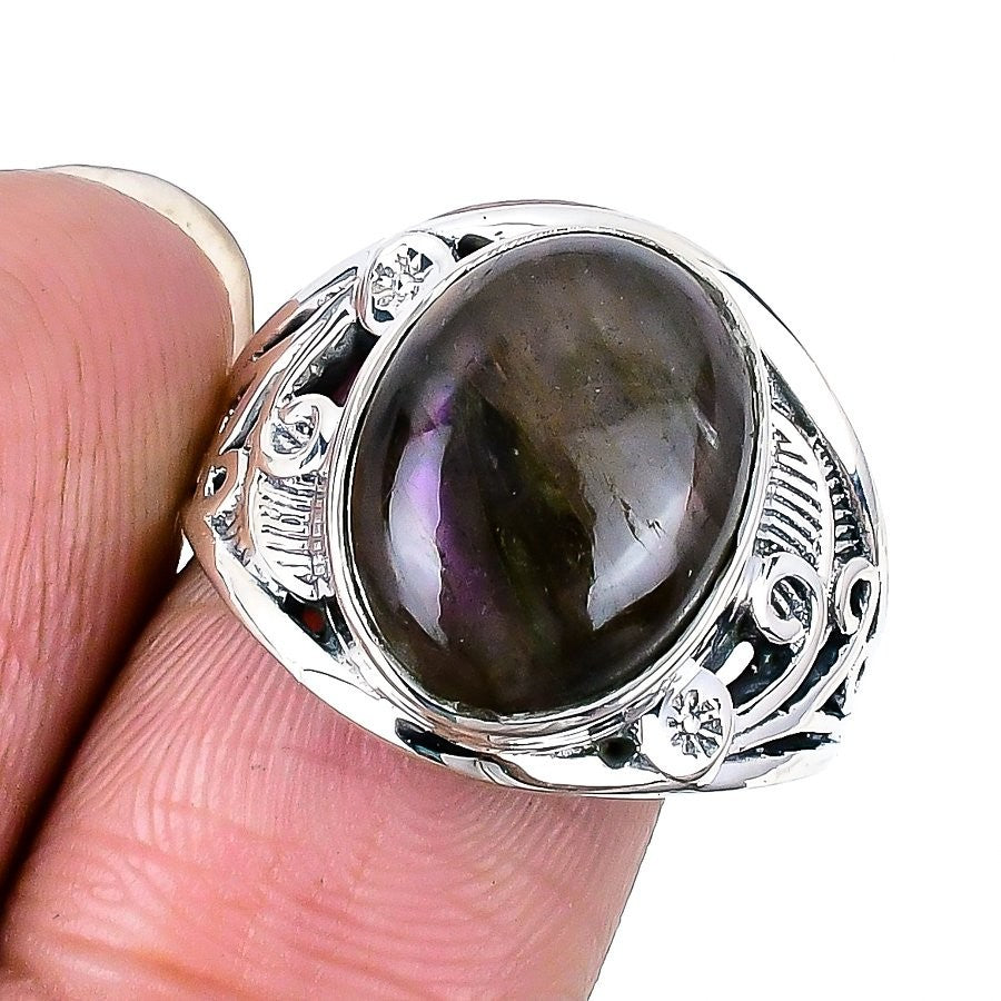 Purple Labradorite Stone Sterling Silver Handmade Statement Ring Jewelry US 9.5